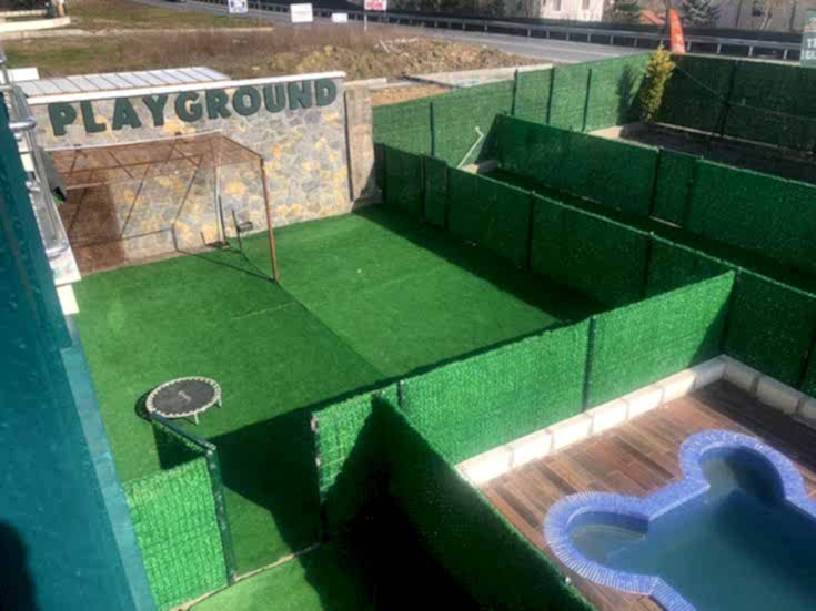 - Büyük iç / dış mekan oyun alanları Çakıl, Halı ve Çim bahçeler